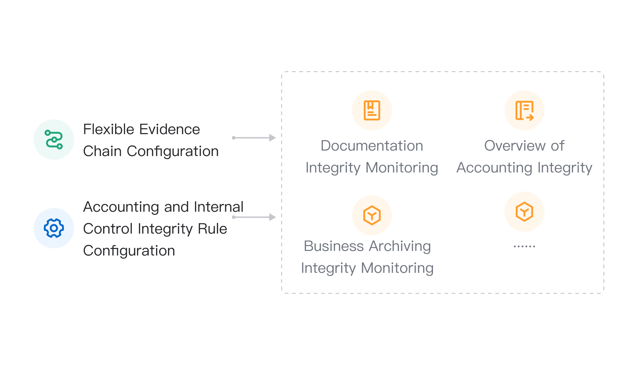 - 依托灵活的证据链及入账和内控完整性规则配置,帮助企业实时、全量监控重要流程或场景的内控及入账完整性概况,如应用于IPO审计资料完整性监控